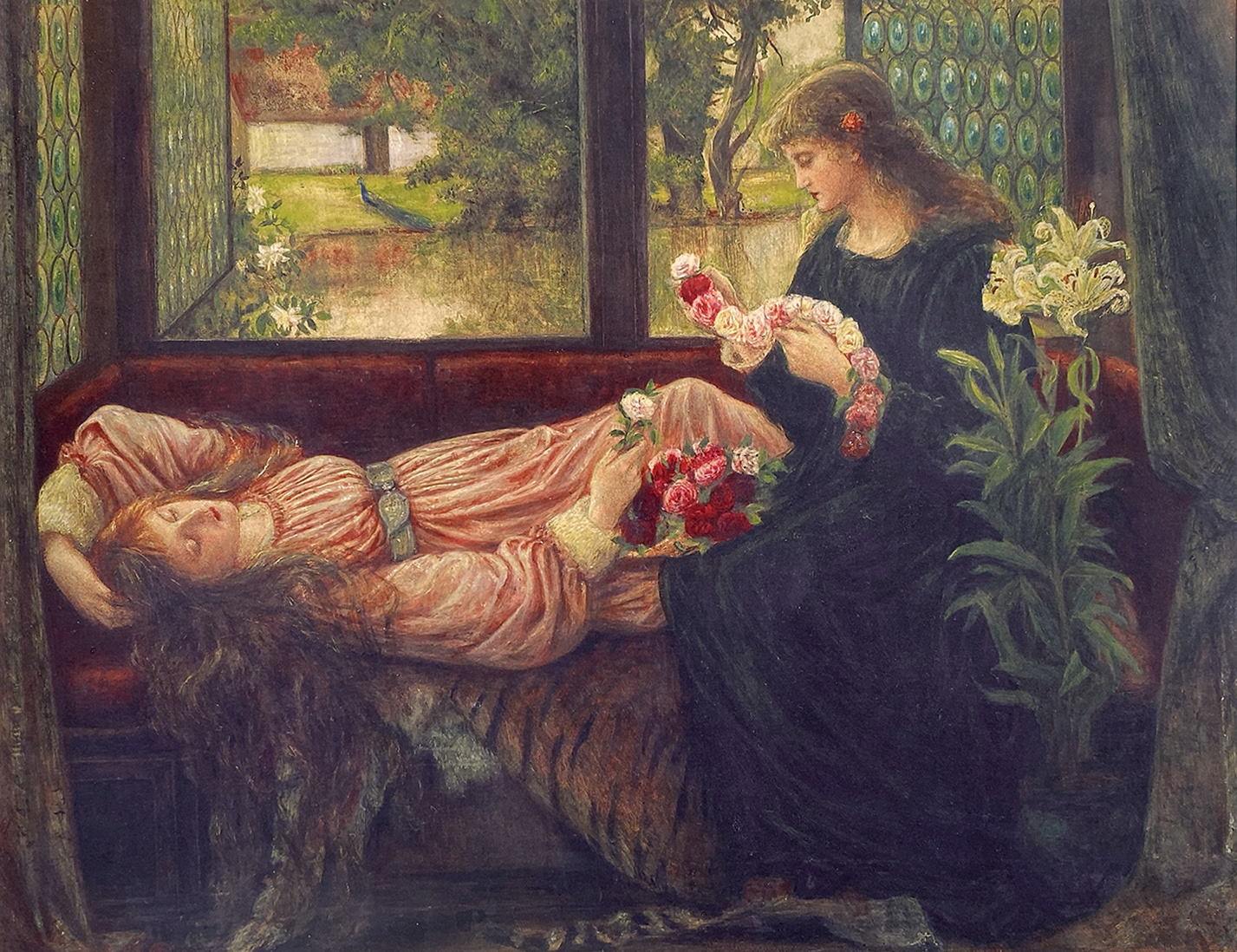 Marie wrote to Ford Madox Brown explaining that she was preoccupied with her baby and sister’s health and felt, ‘too weak to paint.’ At William’s request, she took some time off painting to rest, however Ford Madox-Brown speculated that she stopped painting due to her husband’s jealousy over her successful career and her continued alliance with himself as her mentor.
