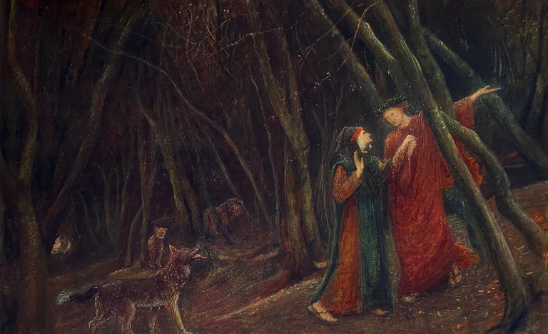 Dante and Virgil in the Dark Wood, watercolour and Gouache on paper By M. Spartali Stillman c. 1908. Private collection.