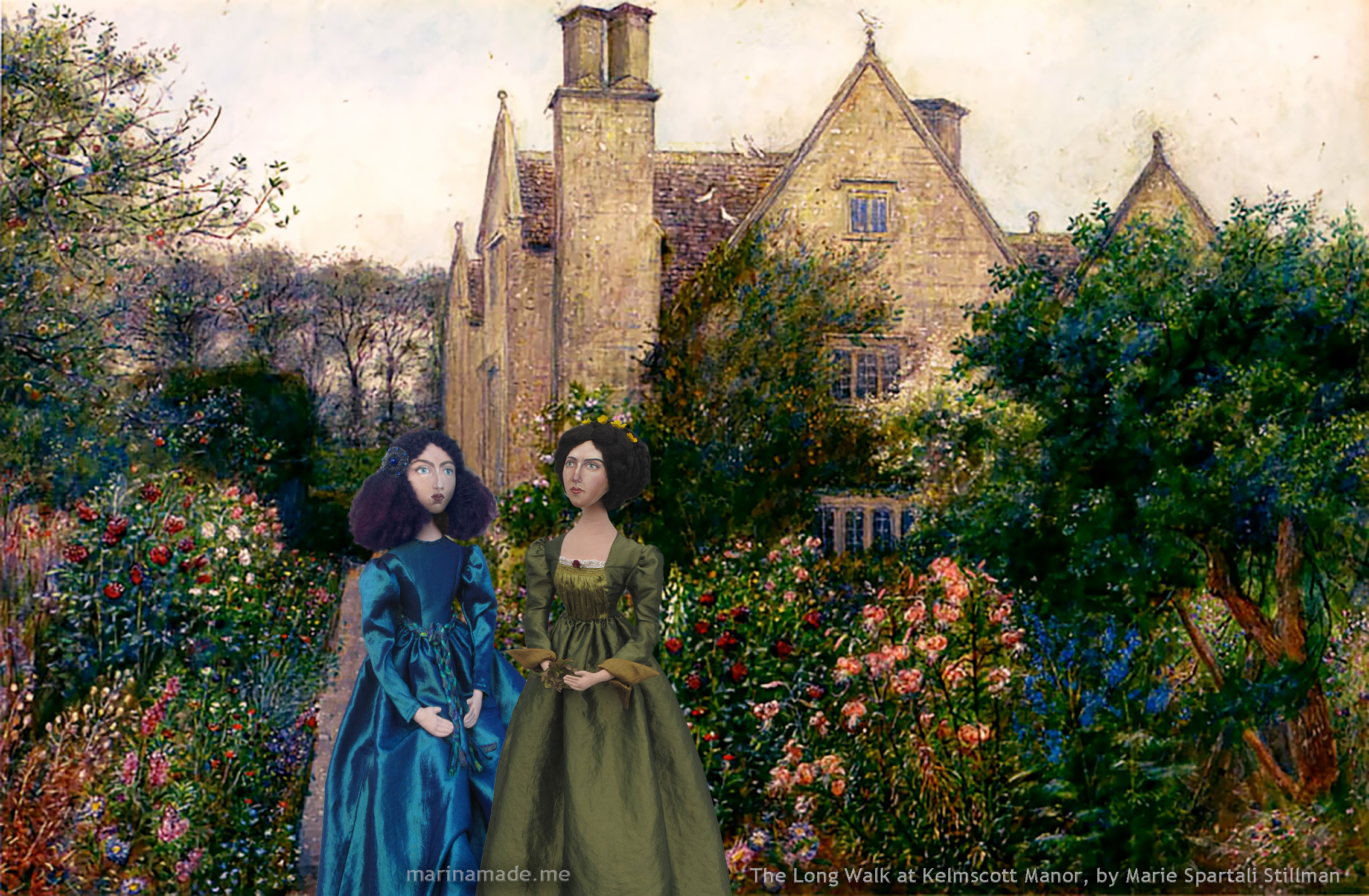 Marie with Jane Morris, imagined together at Kelmscott in Kelmscott Manor, a painting by Marie Spartali Stillman.
