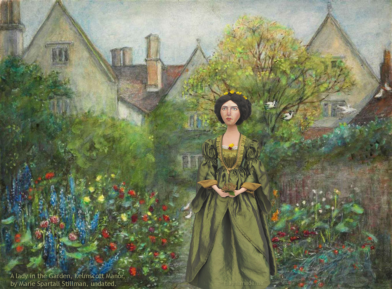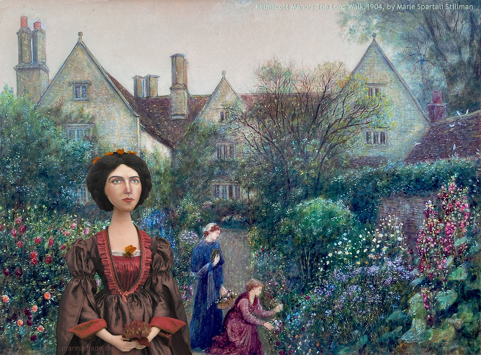 Muse of Marie in ‘A Lady in the Garden, Kelmscott Manor, painted by Marie Spartali Stillman..