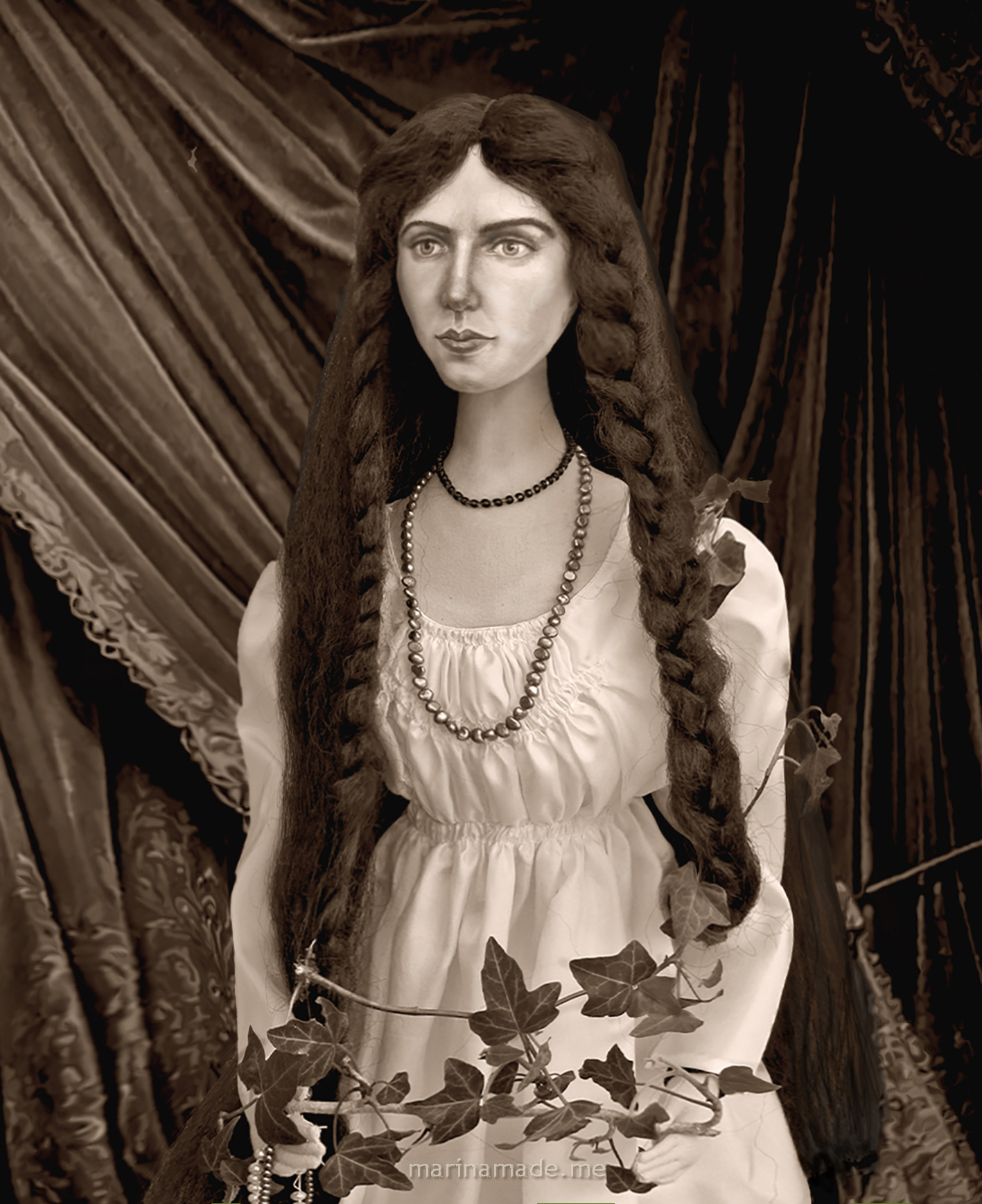 I have also depicted my muse of Marie as, ‘Mnemosyne’, or Memory, ‘Mother of the Muses’ by Julia Margaret Cameron 1868, where Marie’s classical beauty was to resemble a Greek goddess.