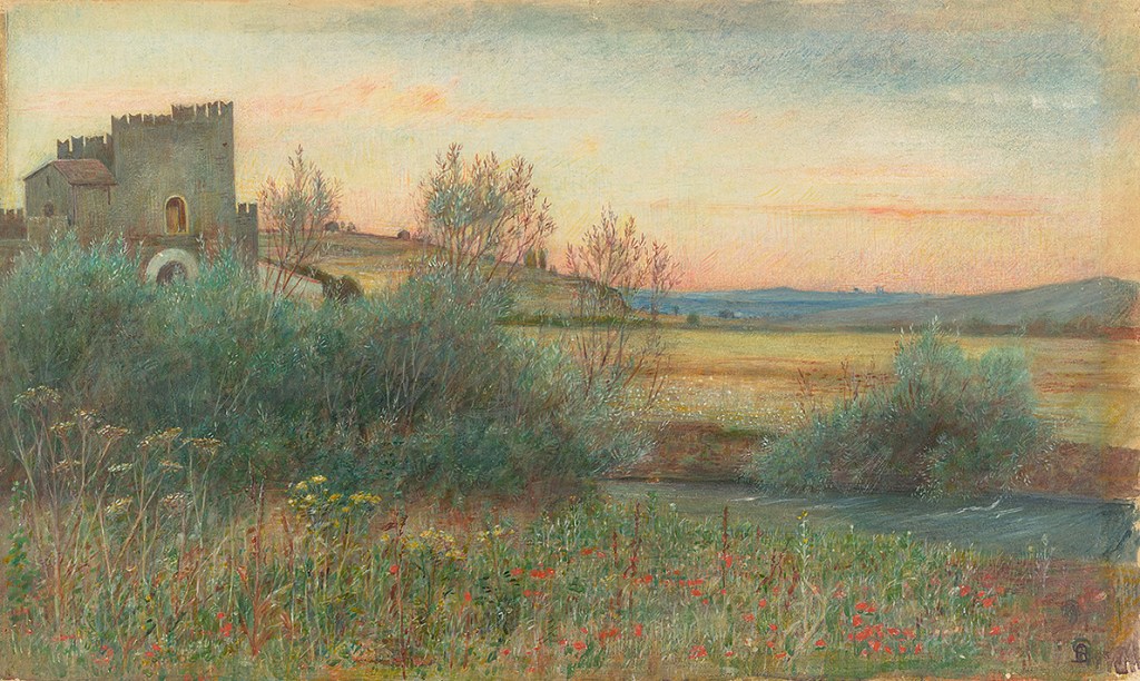 Pont Nomentano, 1895, watercolour, gouache, gum arabic over traces of graphite on paper. Marie spartali Stillman. The Morgan Library and Museum, New York.