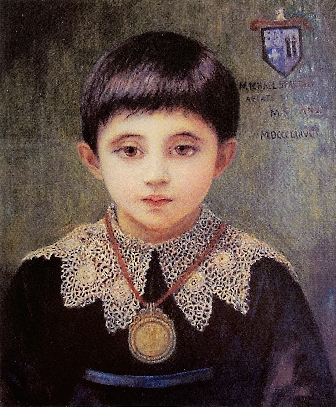 Portrait of Michael Stillman, (Mico) watercolour 1884, by Marie Spartali Stillman. Private collection. Kelmscott Manor, From the Field, undated, in watercolour and gouache, by Marie Spartali Stillman. Delaware Art Museum.