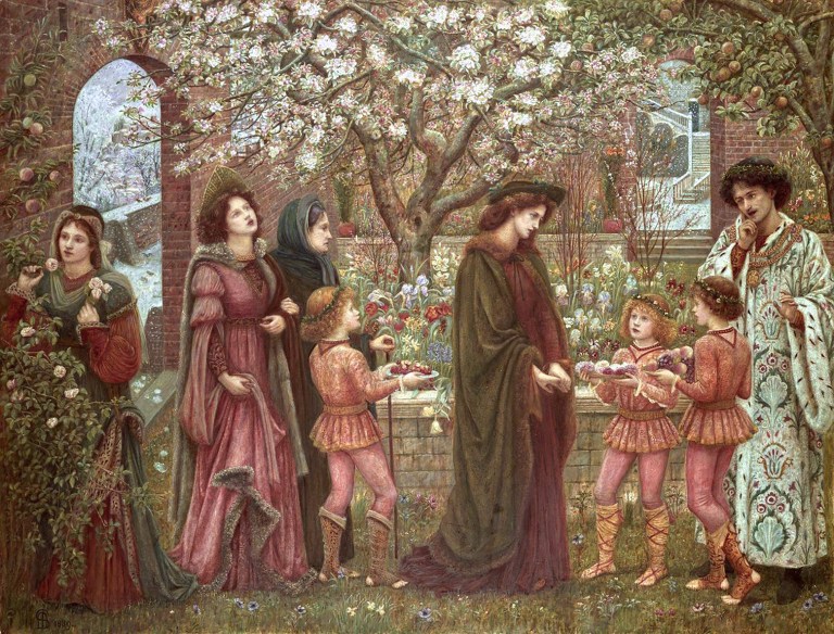 The Enchanted Garden of Messer Ansaldo, watercolour and gouache on paper, by Marie Spartali Stillman 1889. Pre-Raphaelite, Inc., courtesy of Julian Hartnoll.