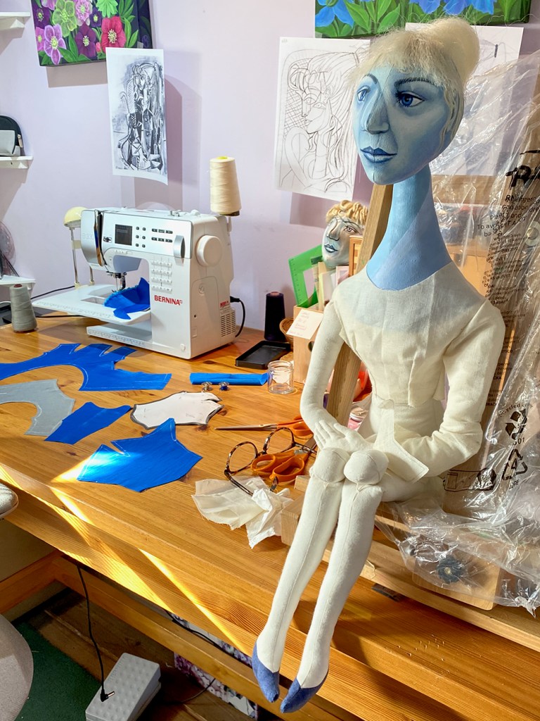 I chose muted greys and soft blues for the fabric palette, echoing the tonal restraint of Picasso’s portraits of Sylvette, cool, composed, and serene. They carry something of her stillness, her modernity, and the distance she held between herself and the artist’s gaze.