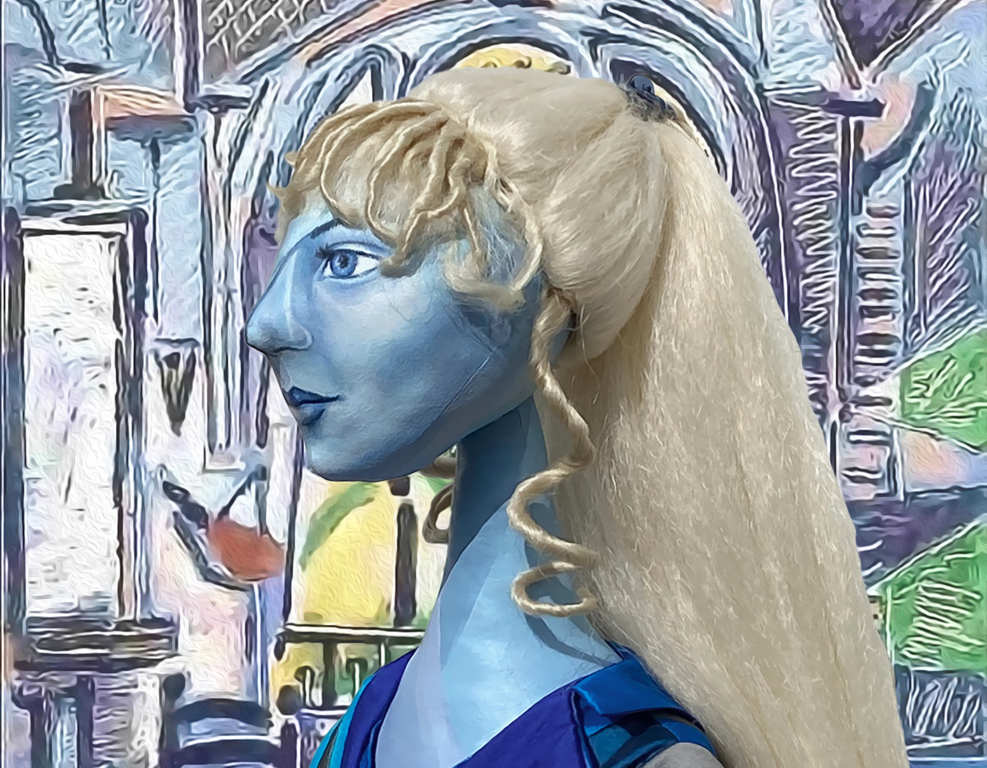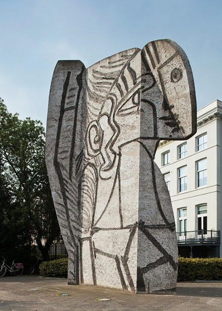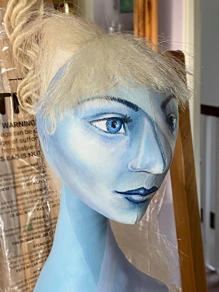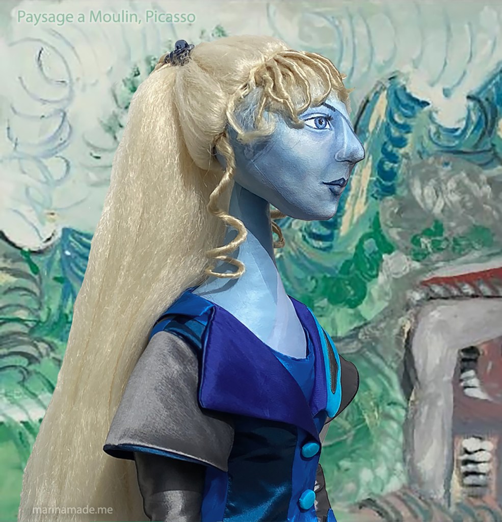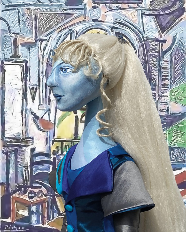 This soft sculpture represents Sylvette David, reimagined through the lens of how Picasso saw her, in a slightly abstracted, cubist-inspired form. Her distinct profile and signature high, blonde ponytail are central to the piece, echoing the way she appeared in Picasso’s paintings and sculptures from his Ponytail Period.