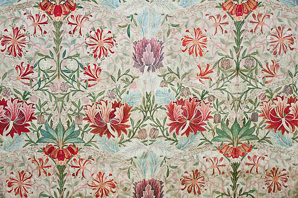 November 20, 2016February 1, 2019 honeysuckle-embroidery-1880 Honeysuckle, embroidered by Jane Morris, designed by William Morris.