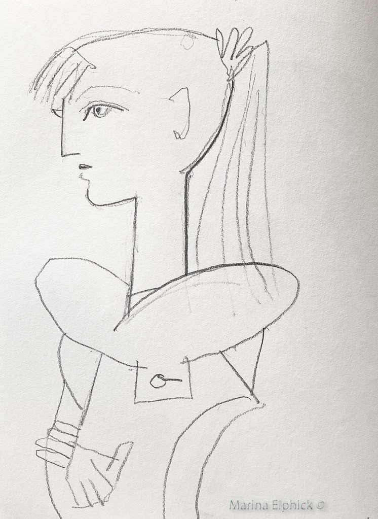 Various views of the muse’s face at the painting stage.Sketch of Sylvette David, Picasso, 1954.Detail of Sylvette’s face, experimenting with hair.Fitting the dress pattern on Slvette muse. Hair not yet fully sewn on.Sylvette in a Picasso style costume, a textile sculpture in doll form created by Marina Elphick. H 80 cm x w 27 cm.Sylvette, 1954, painted sheet metal, by Pablo Picasso.Sylvette with the portrait Picasso made of her in 1954.Sylvette by Picasso, 1954.Portrait of Sylvette David, 1954 Picasso.Sylvette muse with the Pigeons, Cannes, 1957 by Pablo PicassoSylvette muse’ with Portrait of Sylvette David, 1954, Picasso.Sylvette muse set against a Lithograph by Picasso, 1958.Sylvette muse with Picasso’s Earthenware ceramic vessels at the Madoura Pottery workshop in Vallauris, France c.1950s.Sylvette Muse standing, textile sculpture in doll form. Created by Marina Elphick.Portrait de Sylvette David, 10, Picasso. This image was the inspiration for my textile muse sculpture.Sylvette muse seated in, ‘ Paysage De Vallauris’, Picasso, 1953.Sylvette David, charcoal drawing by Marina ElphickSylvette muse at The Bay of Cannes, by Picasso, 1958. Sylvette in Picasso Landscape, Mougins, France.Sylvette in, ‘Paysage à Mougins’, Picasso, 1965.Muse as Sylvette. Pablo Picasso. 1954Sylvette muse doll with Sylvette David, by Picasso 1954Muse imagined standing by Sylvette sculpture, Rotterdam, 1970.Sketch for my drawing of Sylvette David.Self portrait by Lydia Corbett as ‘the girl’ with the ponytail.