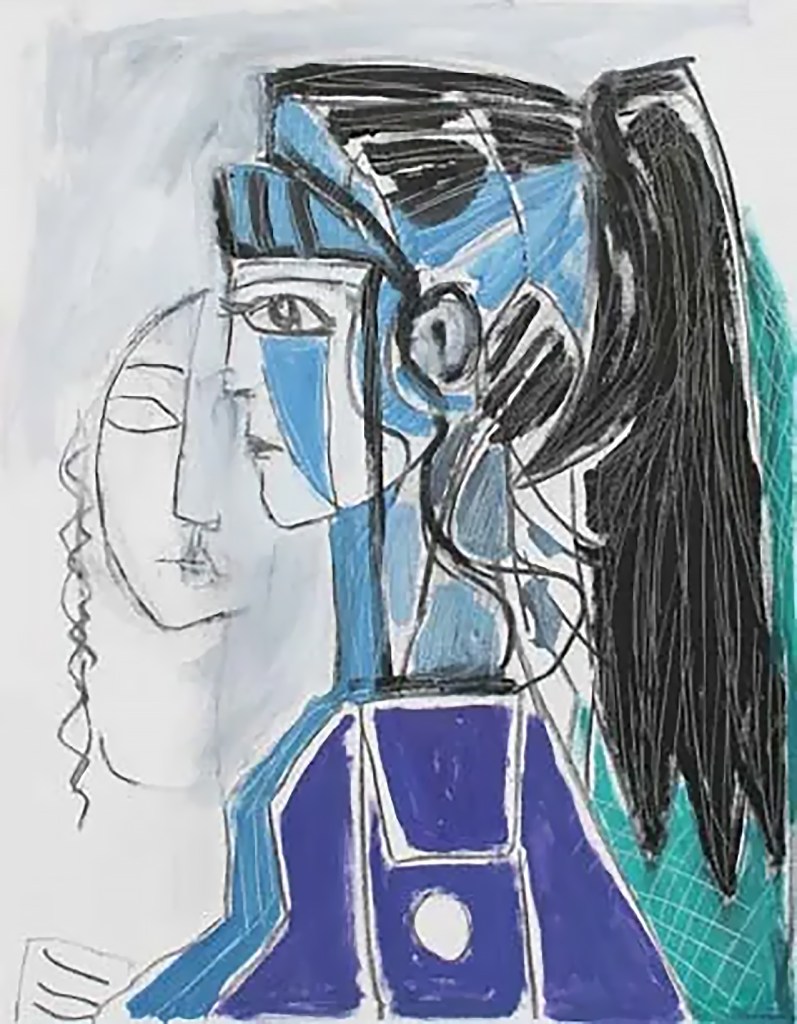 “a L’Atelier” 1955, Picasso.Marie-Thérèse muse detail, left side of face.Marie-Thérèse muse with the Pigeons, Cannes. Painting by Picasso, 1957.Marie-Thérèse muse in a Mediterranean Landscape, a painting by Picasso.